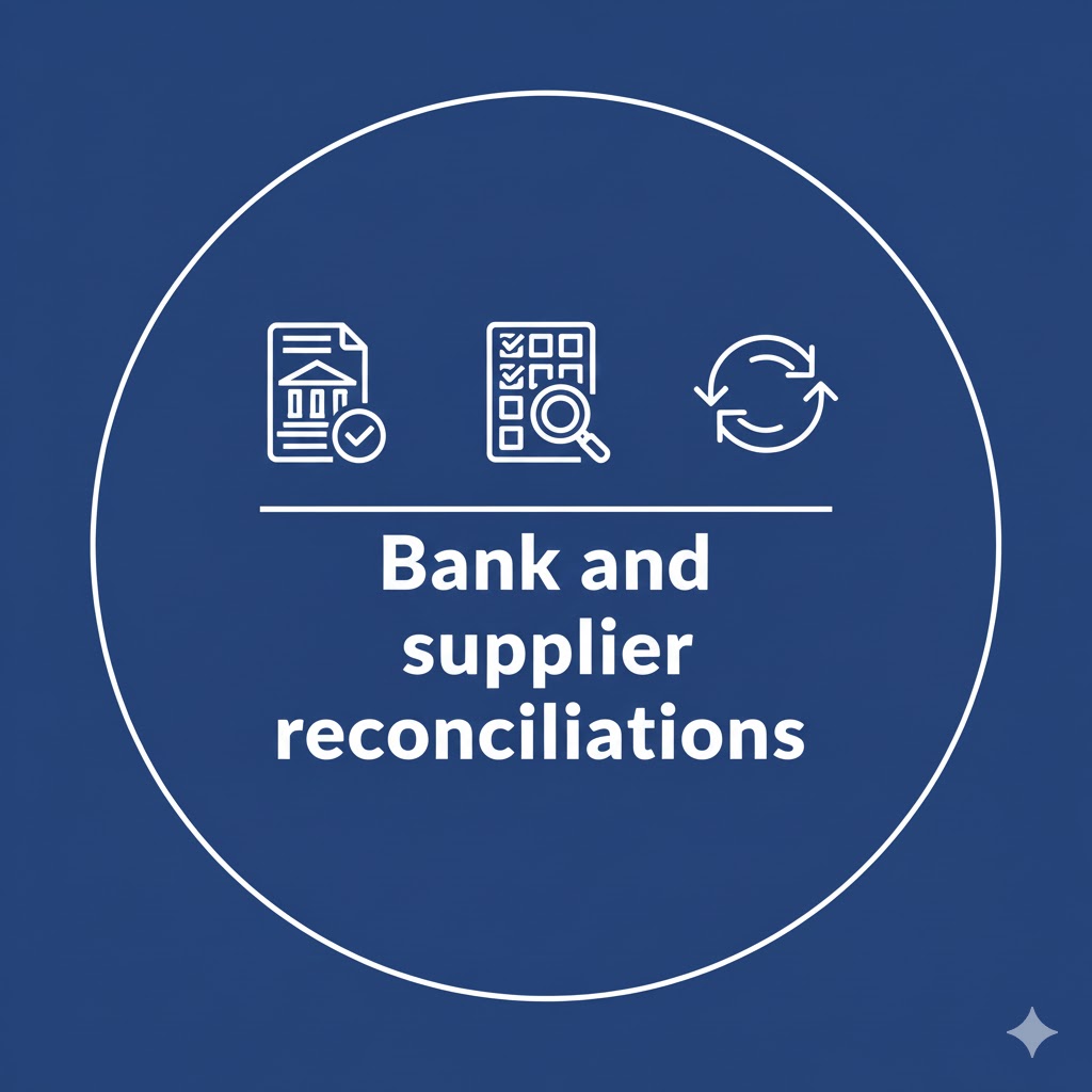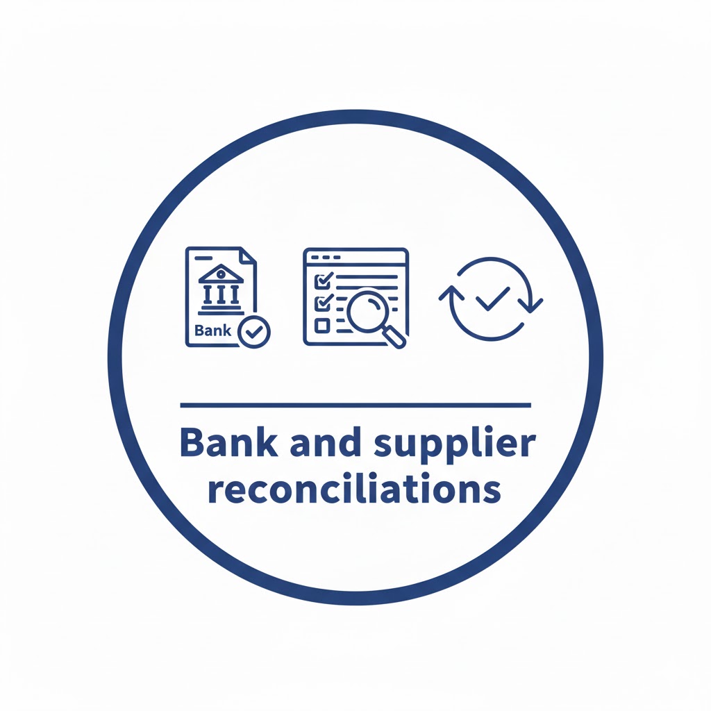 Regular bank and supplier reconciliations to maintain data integrity.